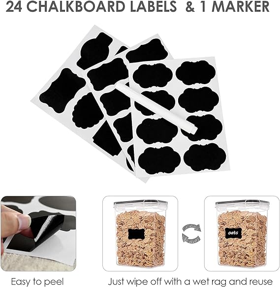 Airtight Food Storage Containers with Lids, Vtopmart 24 pcs Plastic Kitchen and Pantry Organization Canisters for Cereal, Dry Food, Flour and Sugar, BPA Free, Includes 24 Labels,Black