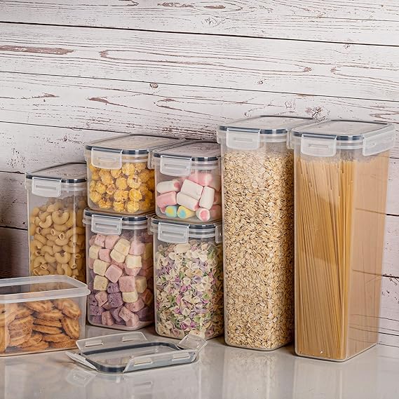 Help Organize Your Kitchen and Pantry— Imagine every time walking to your kitchen or pantry, found everything is neatly organized. No longer messy, you can get everything you want very quickly. With the stackable and space-saving design, these containers will make more efficient use of every inch of your kitchen pantry cabinets. 4 Size Combinations Fit Your Needs — Our kitchen storage container set comes in 4 different sizes. Includes 6 Tall Container (2.5quart/2.8 liters), 6 Large Containers (1.8quart/2.0 liters), 6 Medium Containers (1.5quart/1.6 liters), 6 Small Containers (0.7quart/0.8 liters). Perfect for storing spaghetti, baking supplies, cereal, flour, sugar, oats, pasta, rice, coffee, tea, snacks, nuts and other dry goods. Airtight Containers Keep Food Fresh — The side-locking lids with silicone gasket make these storage containers airtight, and the top flips open easily. The airtight storage system will always keep your food dry and fresh. All have the same lids make it easy to wash dry and reuse with ease. BPA Free and Food Grade Material — Vtopmart pantry storage containers are made of durable plastic, BPA free, which have a longer life than many other brands plastic containers. Clear containers make it convenient to see what’s inside, you can easily get what you want without opening every container. 24 Reusable Labels — Except 24pcs dry food storage containers, you will also receive 24pcs labels. They are reusable, you can switch contents whenever you need. Just wipe clean with a damp cloth to change what you have written, Peel and Re-stick.