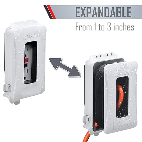 WEATHERPROOF COVER: Get tough and reliable protection, the white polycarbonate 1-Gang Weatherproof In-Use Electrical Outlet Cover for home improvement is NEMA 3R rated and cULus listed for wet and damp locations. EASY TO INSTALL: Set up your outdoor outlet cover in no time at all. Quick-Fit keyhole mounting system allows installation under a minute for either horizontal or vertical mount. 16 CUSTOM CONFIGURATIONS: Our weatherproof outlet cover uses UFAST for 16-in-1 custom device configurations. You can mount and protect duplex, switch, round, or GFCI outlets. QUALITY CONSTRUCTION: Our socket cover for outlets is built from high-impact polycarbonate for maximum durability and synthetic neoprene rubber that won't dry rot, crack, or deteriorate in sunlight. EXPANDABLE DESIGN: Our weatherproof expandable cover can extend from 1 inch to 3 inches deep depending on your needs. The clear window allows for quick visual inspection without opening the unit.