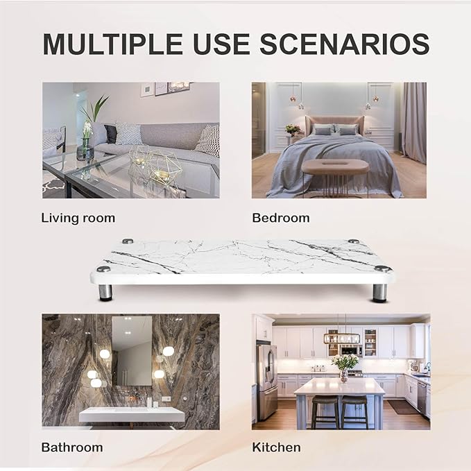 INSTANT DRYING: Diatomaceous earth sink caddy can hold up to twice its weight of water and fully absorb it within a few seconds. Keep the bathroom and kitchen countertops dry and waterless. HIGH QUALITY: Stone sink caddy is made of environmentally friendly and durable diatomaceous earth. The feet of the sink caddy are made of stainless steel and equipped with a non slip rubber bottom, which can withstand the worst wet conditions and reduce hard water stains on the countertop. MODERN DESIGN AND PRACTICAL: The design of the marble sink caddy is simple and beautiful and perfectly integrated into the bathroom or kitchen. The raised base design can promote rapid drying, reduce the accumulation of stain, and keep the counter dry. MULTI FUNCTION: Instant drying stone is used as soap and brush in kitchen, lotion in bathroom, toiletries and toothbrush cup. This sink tray provides a clean and orderly space for your kitchen, bathroom, or room, making it your best home essentials for new home! EASY TO ASSEMBLE: The sink tray size is approximately 11 x 4.7 x 0.98 inches, and our sink tray can hold up to 30 pounds per layer. Your sink tray can be easily assembled without any tools.